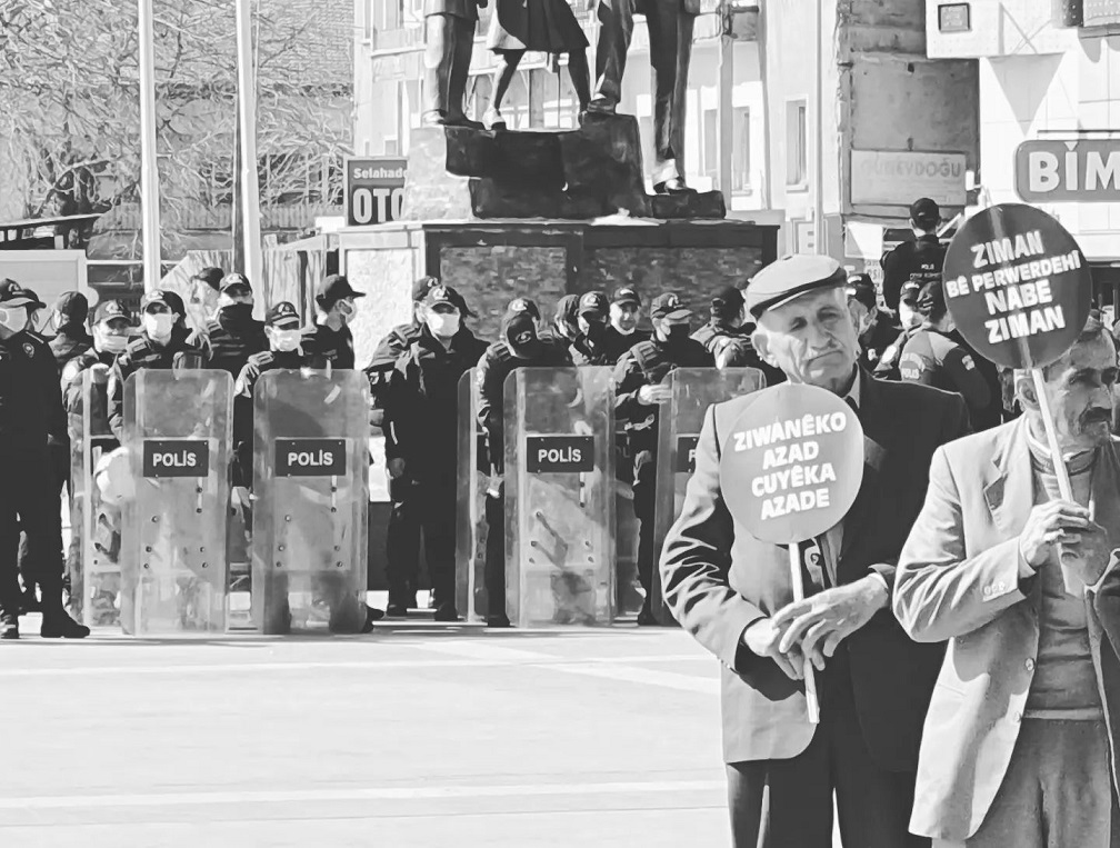 Dewleta tirk a terorîst, bi tifing û bi tank û top û firoke û leşker û polîs û şûr û mertal, dora van her du kurdên ku li dest wan bandrolên bi dirûşmên 'zimanê kurdî' heye pêçaye.