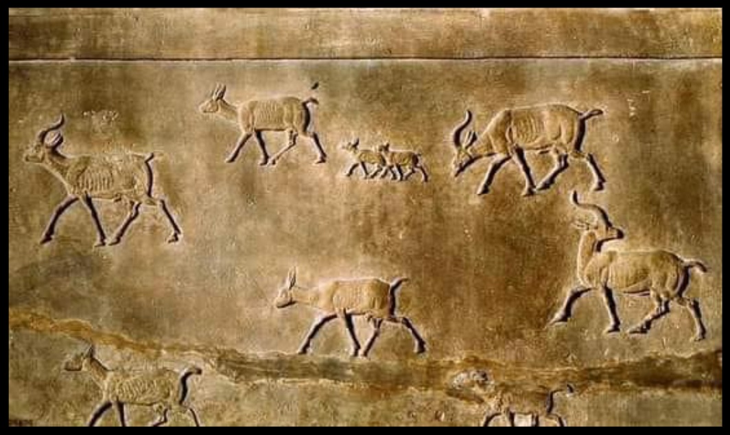 Kürdistan'da bulunan ve MÖ 645 ile 635 yılları arasına tarihlenen bir rölyefte geyik sürüsü