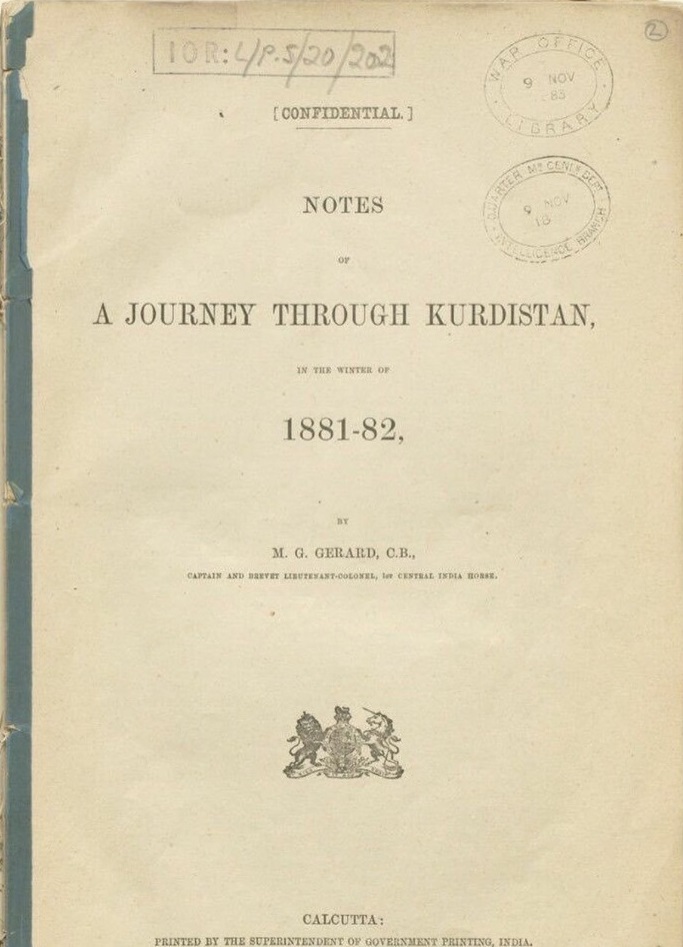 - Kürdistan'ın yeraltı ve yerüstü zenginliklerinin NASIL ele geçirileceğini anlatan bir ingiliz yüksek rütbeli askeri komutan ve ingiliz kraliyet ajanı tarafından 1881'de hazırlanmış ve 1883'te Hindistan'da basılmış kitap