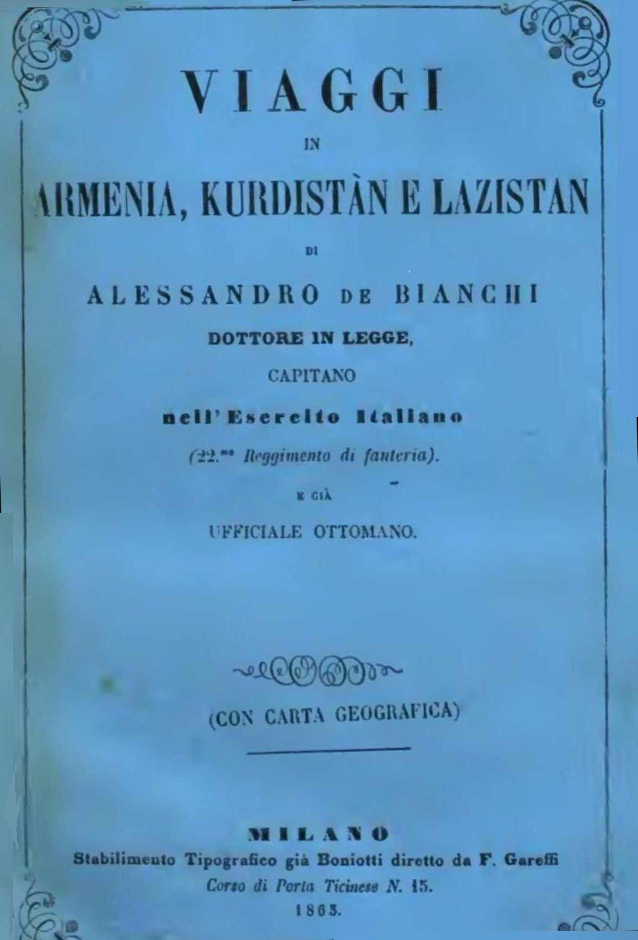 Ermenistan, Kürdistan ve Lazistan'a Seyahatler - 1865'te Milano'da yayınlandı ve 1901'de ölen İtalyan subay ve seyyah Alessander De Bianchi tarafından yazıldı.