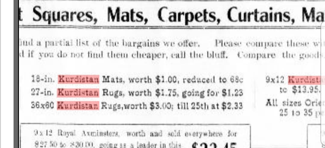 Newyork Times ve diğer gazetelerdeki ilanlar.. fiyatlara bakilirsa dönemin en pahali ve en kaliteli halıları..
