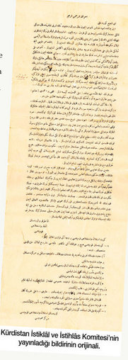 Ey Kürt Halkı! Çok iyi biliyoruz ki; türkler, dar günlerinde kürtlerden hep yardım istemişlerdir. İyi günlerinde ise kürtleri tanımamışlar ve bizi haklarımızdan mahrum etmişlerdir.