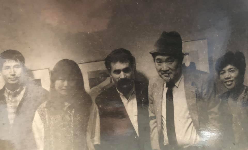The Fine Arts teacher in Baghdad, Mr Rasool Alwan looking to my woodcuts in The Cultural Center of France in Baghdad, 1976