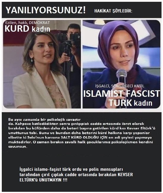 İşgalci, islamo-faşist türk ırk-devleti masum kürd insanlarını kendi öz halkına karşı azılı bir numaralı düşman haline getiriyor ki