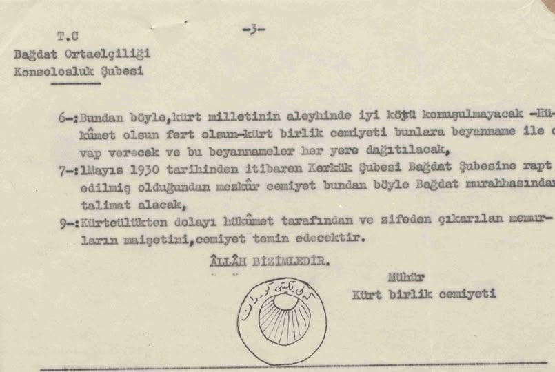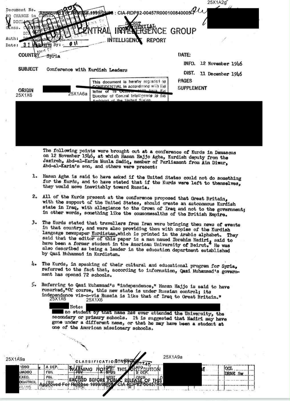 11 Aralık 1946 tarihli Amerikan istihbarat belgesine göre, o dönemin kürd lider ve siyasetçileri “İngiltere’nin kürdlere bir devlet kuracağı” hayaliyle hareket ediyorlardı. İşte böyle; cahil, sömürge toplumlarının liderleri, arab toplumu ve arab liderlerinde olduğu gibi geri ve basiretsiz olurlar. Görünen o ki, o dönemin kürd liderleri İngiltere’nin kurduğu büyük tuzaktan ve yürüttüğü plandan tamamen habersizmiş.