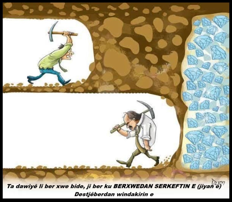 Berdewam be li ser rêka azadiyê! -- Ta yek jî ji me mabe li ser ruyê vî erdê! G.C. |