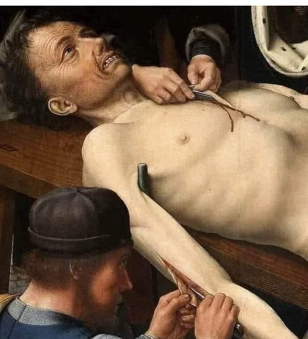 Resim MÖ 500'lü yıllarda Acemistan'da (''İran''da) rüşvetçi bir hakimin derisi hakim daha canlıyken yüzülerek infaz edilmesi sahnesini gösteren bir tablo.