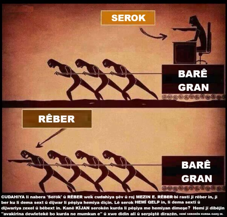 CUDAHIYA li nabera 'Serok' û RÊBER wek cudahiya şêv û roj MEZIN E. RÊBER bi rastî jî rêber in, ji ber ku li dema sext û dijwar li pêşiya hemiya diçin. Lê serokên HEMÎ QELP in, li dema sextî û dijwariya zexel û bêbext in. Kanê KÎJAN serokên kurda li pêşiya me hemiyan dimeşin? Hemî jî dibêjin ''avakirina dewletekê bo kurda ne mumkun e'' û xwe didin alî û serpiştê dirazên.