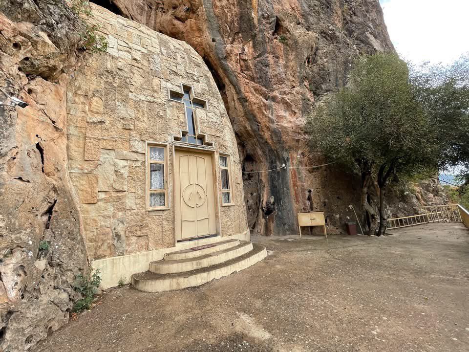 Sankt Georgs kyrka och snidningen i klippan ligger i omradet Berwari i Duhok i Kurdistan