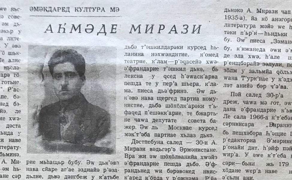(Emekdarêd kultûra me: Ahmedê Mirazî, Rêya Teze, 31-1-1990).