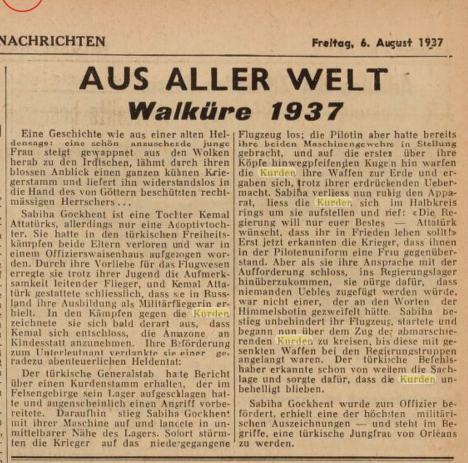 bulundular. (Alman Nazi gazetesinde Atatirk ve Sabiha Gökcen'i öven bir yazı.. Kürtlerin üzerine bomba yağdırılmasını büyük bir zevkle anlatıyor.