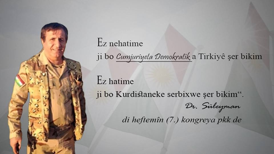Vi förlorade Dr Suleiman (pseud) Dr Said Curukkaya, en orädd hjälte i kriget mot de turk-arabiska ISIS terroristerna. Dr Suleiman gjorde stora militära insatser för de kurdiska styrkorna som bekämpar ISIS. Han var en erfaren gerillaledare i Kurdistans berg och kämpade många år mot den turkiska islamistiska armén.