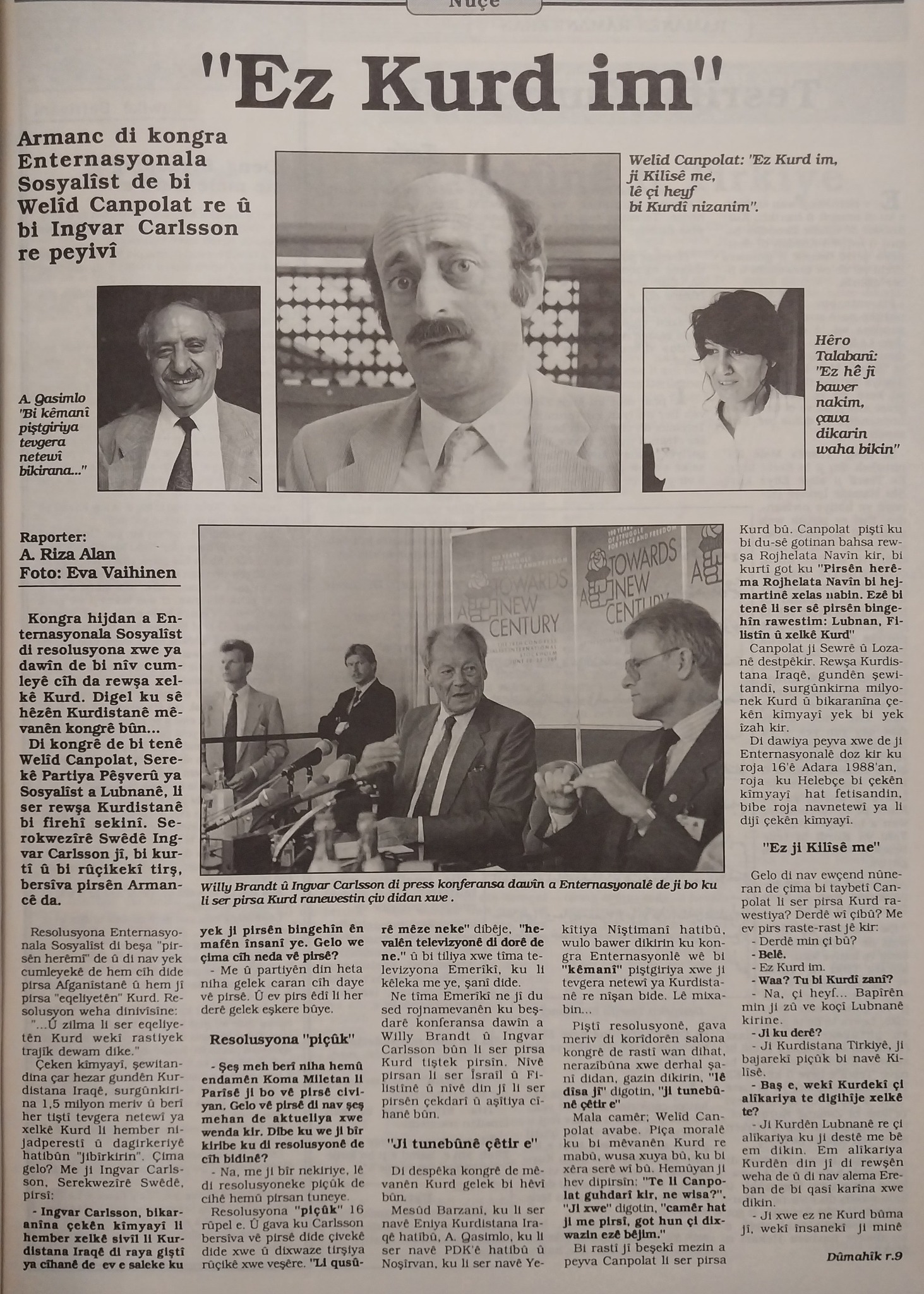 Gazeteci Gürbüz Evren'in CNN-Turk tv. kanalında Dürzilere dair söylediği sözde gerçeklere karşı, Dürzi lider Velid Canpolad'ın bundan 26 yıl önce Sosyalist Enternasyonal'in 18. Kongresinde Armanc gazetesinin Haziran-Temmuz 1989 tarihli 93-94. sayısında yaptığı açıklamada: "Ez Kurd im, ji Kilîsê me." (Ben Kurdüm ve Kilis'liyim) diyor.