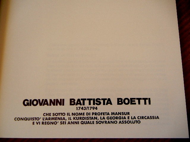 (Giovanni Battista Boetti: 1743/ 1794: che sotto il nome di profeta Mansur conquistò l'Armenia, il Kurdistan, la Georgia e la Circassia e vi regnò sei anni quale sovrano assoluto)