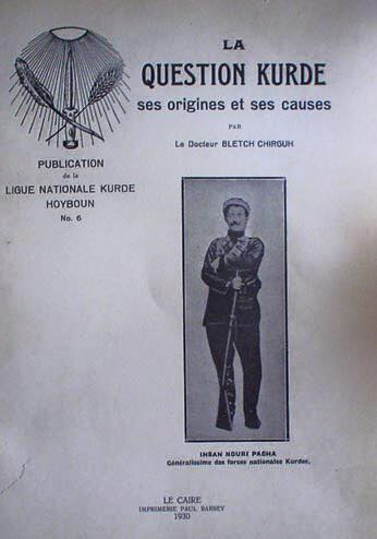 Kürd Örgütü Xoybûn tarafından 1930 yılında fransızca olarak yayımlanmış "Kürd meselesi kökeni ve etkileri" adlı çalışma..