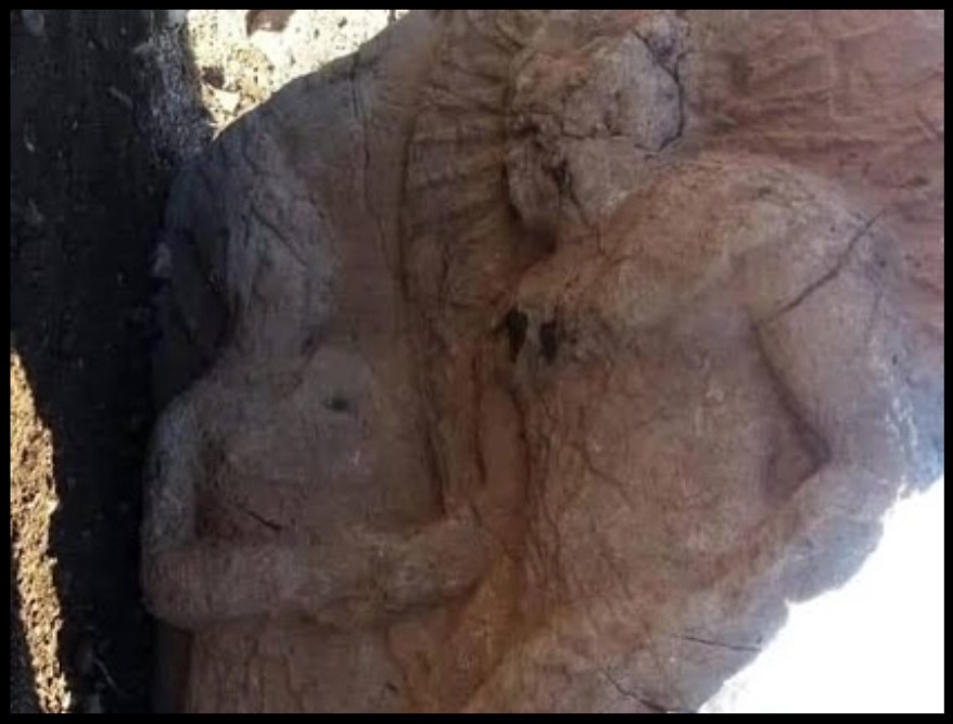 zamanla defineciler tarafından tahrip edilmiştir. Ancak sağlam kalan bir tokalaşma steli ile bir yazıt, bölgeden alınarak