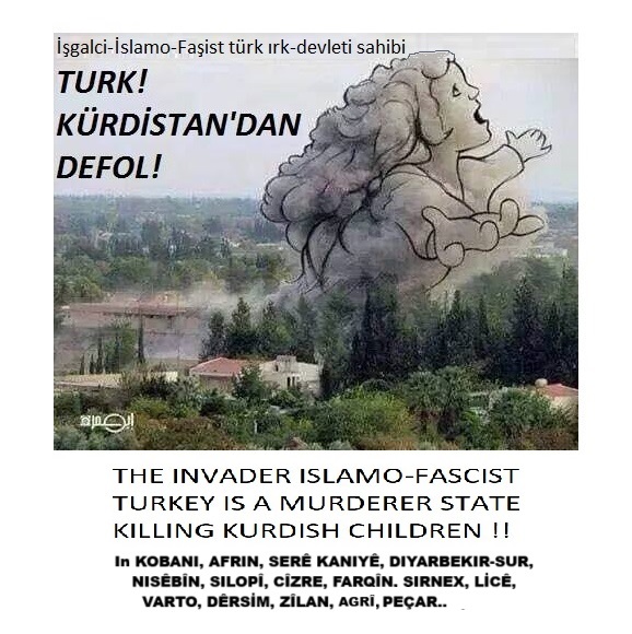 İşgalci türk asker ve polisi kürd çocuklarını mahsusen BİLEREK eziyor! Amaç belli: kürd neslini yok etmek! Oysa türk şehirlerinde zırhlı araçların çocukları ezdiği ne görülmüş ve nede duyulmuştur. Kardeşlik mi dediniz? ÖNCE ülkemizden ÇIKIN GİDİN! Batı Anadolu dediğiniz yer de sizin değil, yunan halkınındır. Nereye gidiyorsanız gidin! Orta Asya'ya gidin, çıktığınız yere.. Sonra SİTTİN SENE de geçse birbirimizle asla konuşmayacağız ve nede sizin yüzünüzü bir daha görmek istiyoruz. Gidin! Kara bela hep sizinle olsun!