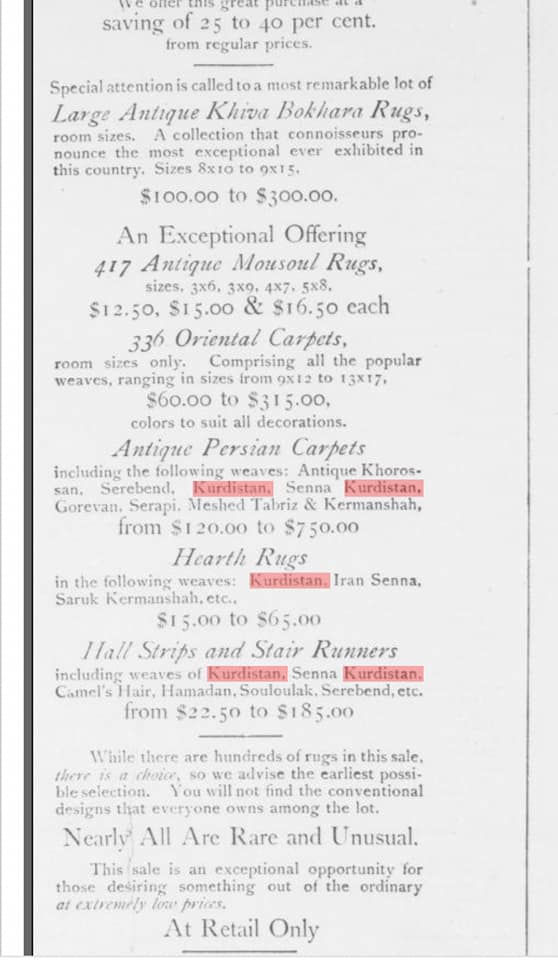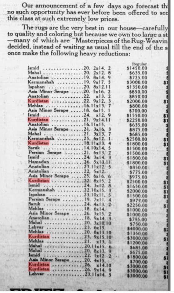 Newyork Times ve diğer gazetelerdeki ilanlar.. fiyatlara bakilirsa dönemin en pahali ve en kaliteli halıları..