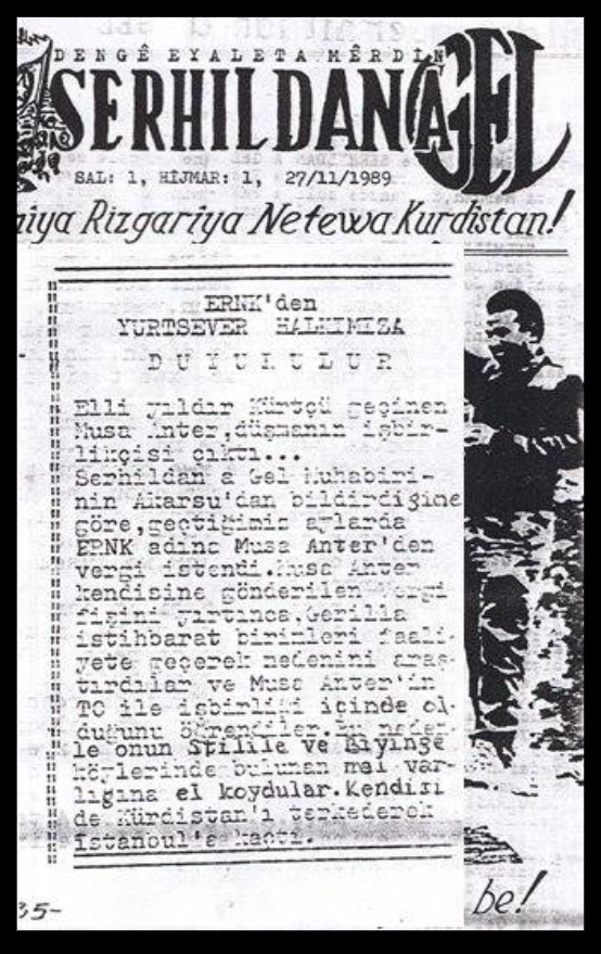XAÎN XAPO, önce MUSA ANTER'e mektup göndererek aşağıladı, Musa Anter altında kalmadığından, cevabi mektubunda ;"Ben, her zaman halkımın emrinde bir generalim, Sen, Benim yanımda asker dahi olamazsın." diyerek yanıtını verdi. Ondan sonra Xapo PKK'de;"Musa Anter Birlikleri" kurdu ve Musa Anter'i şehit ilan etti. Ergenekoncu Xapo, Ergenekoncu devlet ile birlikte, ortak yapımları olan bir senaryo ve plan üzerinden yaşayan Musa Anter'den korkan Ergenekoncu devlet ve APO ile PKK'sine göre ölüden zarar gelmezdi. Çocuk yaşlarda bir sempatizan yaşamını yitirdiğinde binlerce kişi tabutun arkasında mezarlığa yürürken, PKK nin kararı, yönlendirmesi ve baskısı üzerine, Musa Anter'in tabutunu taşıyan 4 kişi dışında hiç kimse tabutu omuzlamadı ve tabutun arkasında yürümedi. Bu kürd halkı için hazin bir durumdu. Daha sonra da Musa Anter in ölümünden ve cenazesinden siyasi rant devşirmek için Xapo'nun PKK'si tarafından şehit ilan edilerek, "Musa Anter Birlikleri" kurulduğu ilan edildi. Xapo'nun emri ile önce teşhir edilerek itibarsızlaştırılan (manevi açıdan öldürülmek istenen) sonra da fiilen katledilen ve daha sonra da "PKK'nin Şehidi" şeklinde ilan edilerek ölümünden siyasi rant çıkarılan kaç kişi var, araştırmalıdır. |