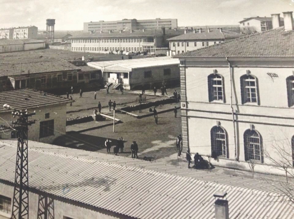 Diyarbekir Maarif Koleji’nin kampüsü 1960- Arka planda Sosyal Sîgorta Hastahanesi görünüyor.